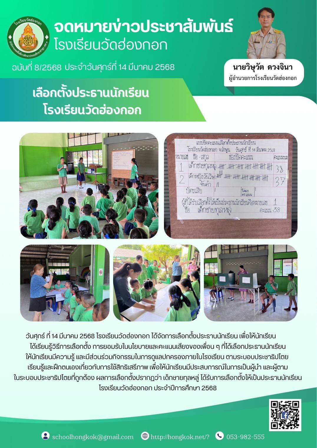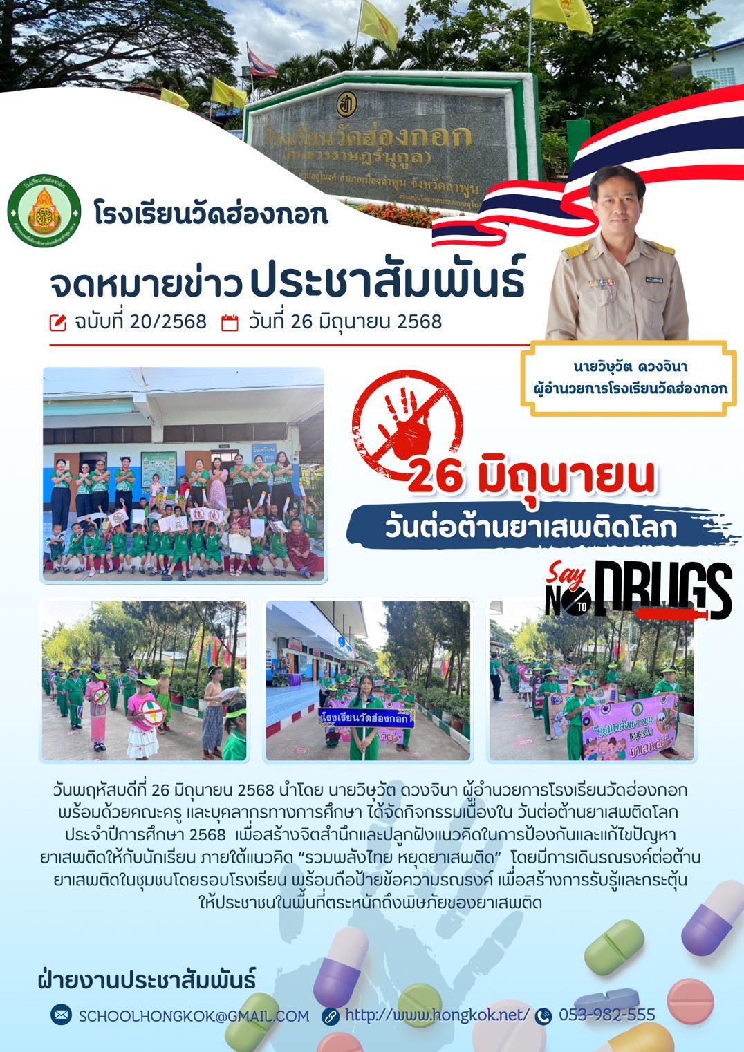 โรงเรียนบ้านฮ่องกอกหมู่ที่ 4 บ้านฮ่องกอก ตำบลอุโมงค์ อำเภอเมือง จังหวัดลำพูน 51150โทรศัพท์ 053982555โทรสาร 053982555 e-mail : hongkok_school@hotmail.com